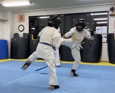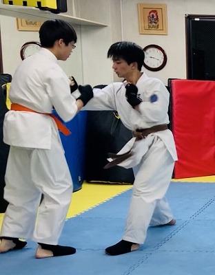 この日は中学生のショウタの組手審査を行いました。