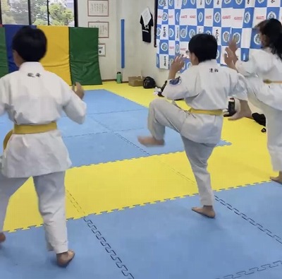 組手での足さばきを磨く運足など、基礎づくりから始めます。